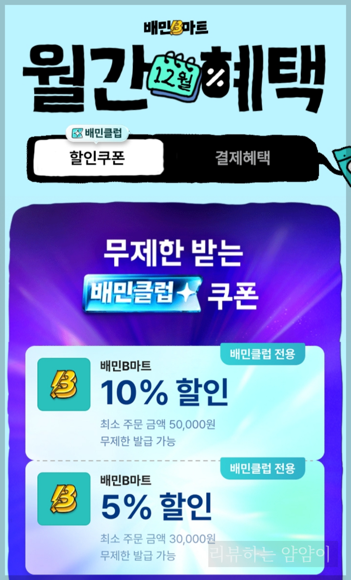 할인쿠폰도 주기적으로 받을 수 있어서 필요한 것들이 있을때 금액을 모아서 한 번에 쿠폰으로 할인받고 구매하고 있어요. 이번에도 쿠폰으로 할인받았고요. 무료이용권이 그렇게 많이 비싸진 않아서 배달을 많이 주문하는 분들이라면 배민클럽으로 이용하는 것도 가성비 좋게 할인 챙길 수 있는 방법이라고 생각합니다.
